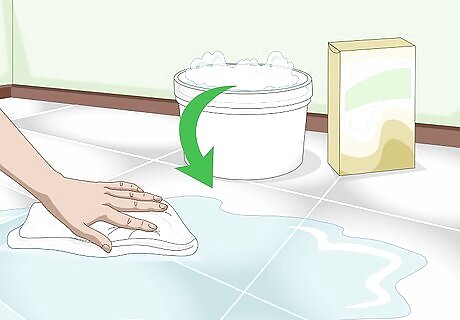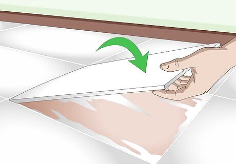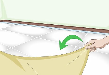 Cover the surrounding areas. Before you start the application, make sure to put a tarp or even a sheet over the floors in the room where the tile is located. This will keep them clean in the event that you accidentally splatter or spill any epoxy paint. When you are finished with your project simply gather this sheet up and toss it or clean it off elsewhere.