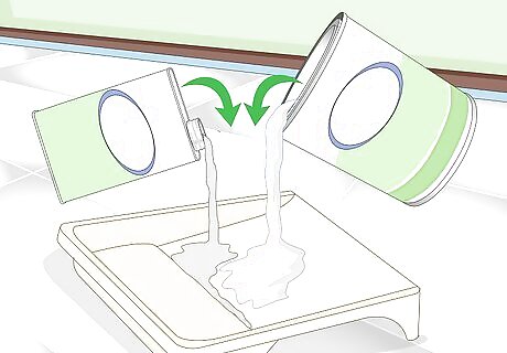 Mix the epoxy together. Most kits come with two separate paint cans: the activator and the base. Grab each can and give it a good shake. Then, slowly pour them together in your paint tray. If the final mixture looks a little transparent or milky, that is okay. It will handle a bit like glue and will dry solid, too.