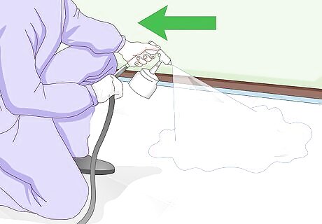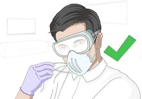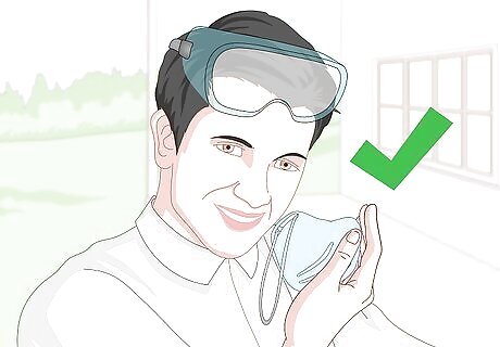 Put on any safety gear. Some kits come with respirators or masks, high-quality rubber gloves, and protective glasses. If this is the case, go ahead and put these on before continuing. If your kit does not provide these items, make sure to go out and purchase them in advance. A respirator, in particular, is a great way to minimize your contact with the nasty fumes. Check that the gloves that you plan on using fit you well. If your gloves are loose or baggy they may hurt your ability to apply the paint cleanly.