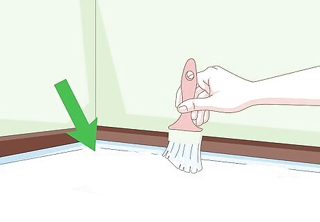Mark off the area with painter’s tape. When the area is completely dry, apply a strip of tape to any wood trim or other surfaces that connect to the tile. This will keep the epoxy paint from spreading beyond the tile. Keep this tape on until a few minutes after you finish your final paint application.