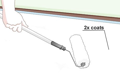 Apply at least two coats of paint or reglazing compound. Pour the mixed paint into a sprayer or dip a brush into your paint pan. If you are working with a brush, start with the edges first and work your way in. You could even brush out the edges and then use a roller for the middle. After your first coat is finished, give it at least two hour to dry. Then, apply the next one. It’s generally best to use a foam roller, as it will leave less of a pattern on the tile. And, if you use a paint pan, make sure to change out the liner and refresh the paint before applying a second coat. Otherwise, you may end up with dried paint lumps on your tile.