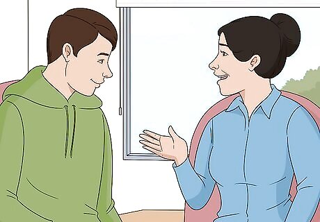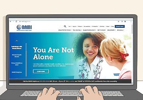 Learn about the person's disorder. Make time to research and learn everything you can about his condition. You'll be better able to understand his perspective and help him if you know about symptoms, treatment, and what to expect for his specific diagnosis. Look for online resources. The National Alliance on Mental Illness has many resources available for family and friends of people struggling with mental illness. Look for books at your local library related to his diagnosis. Seek out reliable sources, such as books written by licensed counselors or medical doctors. Consult your librarian or the library's online portal if you need help. Talk to his doctor and/or offer to go to doctor's appointments with him. Join a support group. Find online forums or local support groups for yourself. For example, if a loved one is struggling with an addiction and you're having difficulty relating to them, find an Al-Anon support group.