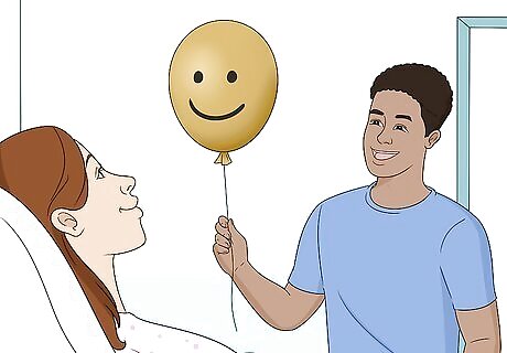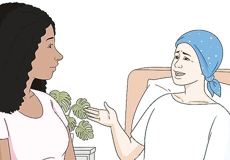 Visit the person. The best way to relate to someone who's been experiencing poor physical health is to show you care by spending quality time with her. Distract her and make her feel supported rather than isolated by her illness. Try to: Make regular contact in-person and in other ways, such as writing to her or calling her. Don't avoid her out of awkwardness or discomfort. Do something fun with her while you're there, such as watching a favorite movie, going for a walk, or reading to her. Make her laugh. Don't be gloomy every time you go visit. Talk about shared, fun memories or experiences you had together.
