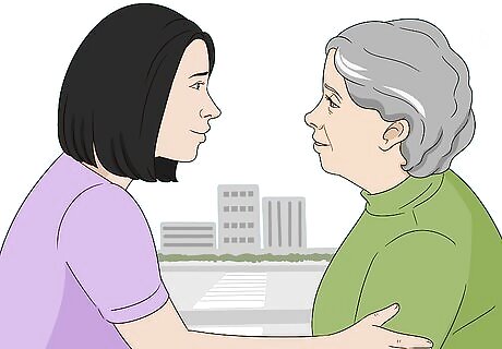 Give a caring touch. Don't be afraid to provide physical comfort to someone. Your reaction may be to avoid touching someone who is sick or dying, but touch can be very comforting to someone, especially if he is no longer able to talk. You can: Hug him. Hold his hand. Give him a back rub. Wet his lips with a sponge. Stroke his hair.