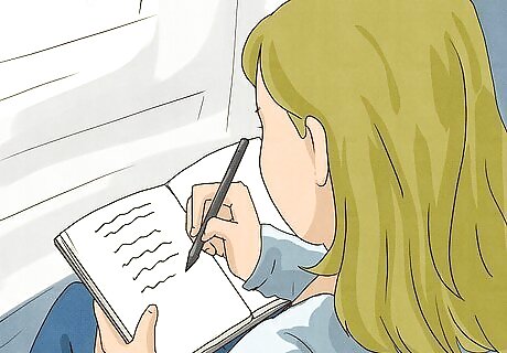 Let your emotions out in a private place. Set aside 5 or 10 minutes every day to jot down a few things in your journal. You could write about your feelings, what you did that day, or what you’re looking forward to in the future. Putting your thoughts down on paper can help you work through them faster than if you keep them bottled up. Make sure you keep your journal in a private place where no one else can find it. If you have pesky siblings, try putting a lock on your journal to keep them out. You could also use a journal to keep a gratitude list and remind yourself of what you’re thankful for.