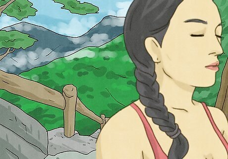 Use your senses to calm yourself down. When you feel stressed, close your eyes and picture yourself on a beach or out in nature. Use all of your senses: focus on what you can hear, touch, smell, see, and taste there. Think positive thoughts to calm your mind and relax your body. Your happy place can be anywhere you’d like it to be. Maybe you have fond memories of a house on the lake, or maybe you like to be in the mountains.
