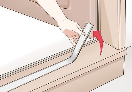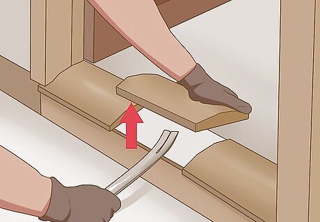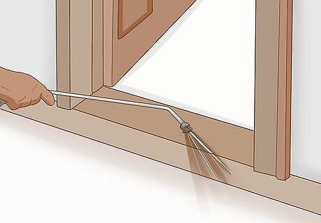 Use the flat bar to pry the exterior board below the threshold, called the "toe kick", away from the sub-sill. Examine the wood underneath for signs of decay or other damage.