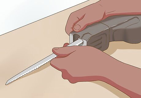 Use a jigsaw or circular saw to cut along the layout lines. Finish cutting with a handsaw.