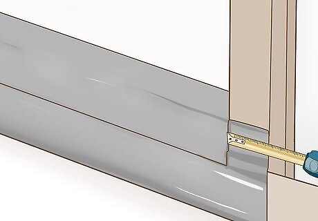 Measure the width of the jamb and stop. Beginning at the same corner, mark the measured distance to the end of the threshold. Draw a perpendicular line from each mark using a square until both lines intersect.
