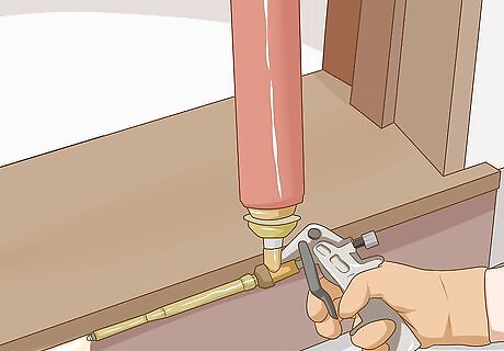 Apply foam sealant underneath the threshold to secure it in place and seal any air gaps.
