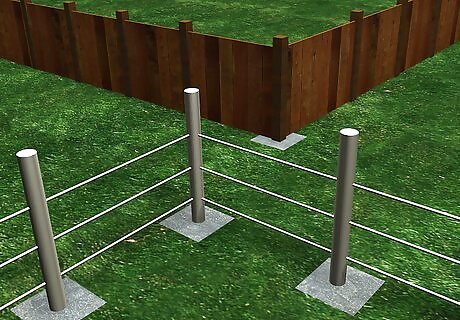 Examine the post. Farm fencing usually only has the corner poles set in cement while suburban wood fences may have every wood post set in cement. Tubular metal posts such as those used with chain link fence, are generally set in cement.