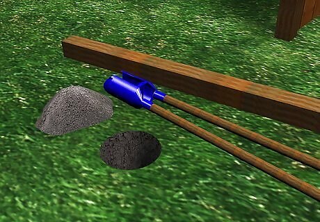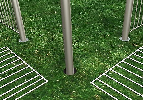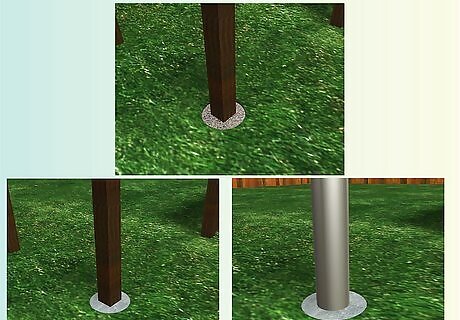 Fill in around the post. Mix a bag of ready mix cement according to package directions. Pour it around the post to the top of the hole. Let it dry 24 hours. If you don’t use cement, and are replacing a wooden post put small gravel in the bottom 6, inches,(15.2 cm), of the hole, then fill the hole with soil to the top and pack it down firmly. Metal poles do not need gravel.