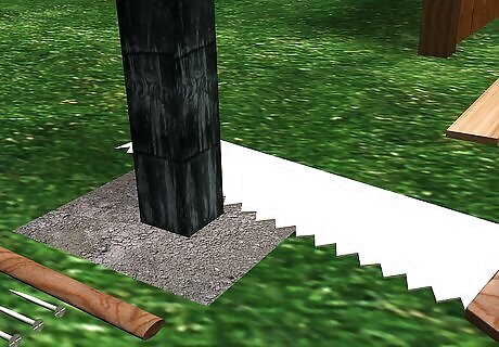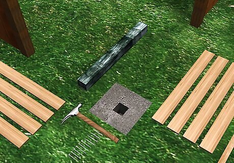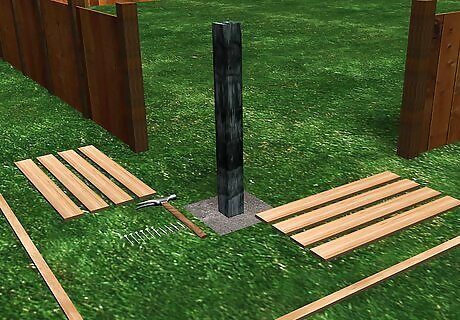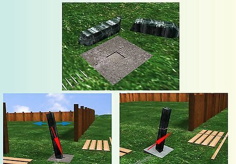 Set the new post in the hole. Place a small level on top and adjust the post until it sits level in the hole. Have someone hold the post level or use props to hold it in place.