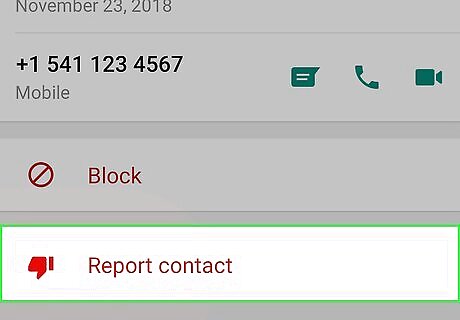 Select the “Report contact” or “Report group” option. Scroll to the bottom of the profile information page and look for the Report button. Once you tap the button, WhatsApp looks through your 5 most recent interactions with the user to check for anything that's illegal, obscene, threatening, intimidating, hateful, harassing, or otherwise in violation of the app's terms of service. You have the option of blocking the contact when you submit your report if you no longer want to receive messages from them. The contact will not be notified of the report.