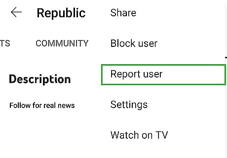 Go to a channel’s About page and select the “Report” option. If you see a channel that’s uploading a lot of misleading videos, you can report the entire channel instead. Click on the user’s channel and find the About tab on their page. Look for the button that says “Report” with a flag icon and tap on it to open up the menu. You can only report channels from a desktop computer.