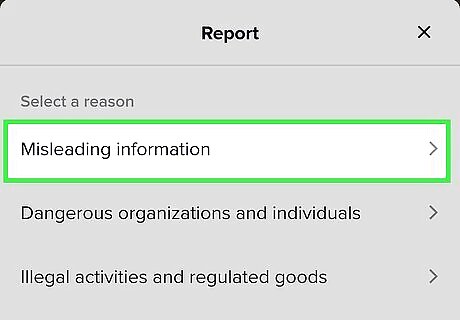Choose “Misleading Information” from the list. You’ll find a list of options on the screen depending on the content that you’re reporting, but you’ll mostly use “Misleading information” or “Posting Inappropriate Content” for false news. Tap on your selection to continue with your report. If you don’t know what category your report fits into, you can select the “Other” option.
