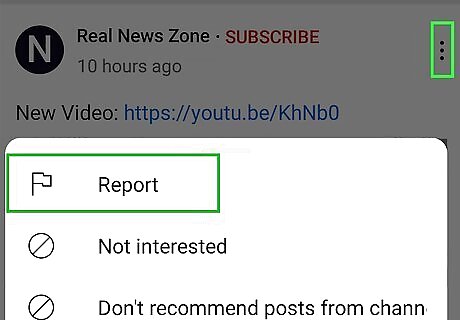 Click on the button with 3 dots and select “Report” on a post. You can report a video, playlist, or social post all the same way no matter which device you’re using. Look underneath the video title or next to a profile or playlist name for the button that has 3 dots. Tap on the button to bring up a dropdown menu of options and click on “Report” to start your submission form. You need to sign in to a YouTube account in order to report a video.