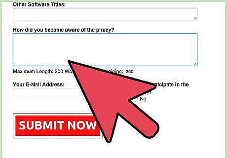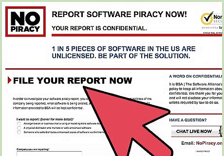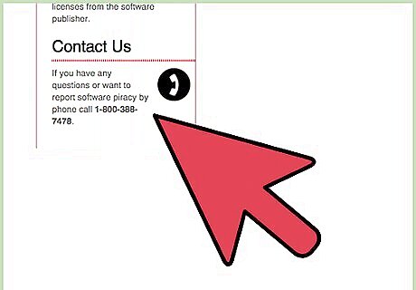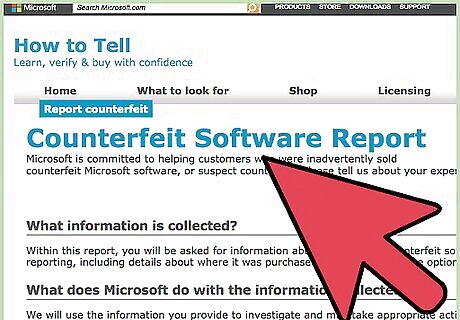 Contact Microsoft via an Internet form, email, or phone. Only do this if the software was made by Microsoft. For the Internet form, visit it at the following URL: https://www.microsoft.com/en-us/howtotell/cfr/report.aspx. To contact Microsoft via email, use the following email address: [email protected]. To contact Microsoft via phone, call (800) RU-LEGIT.