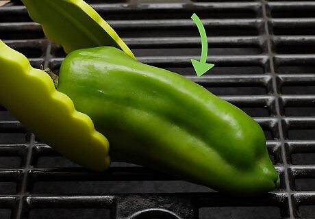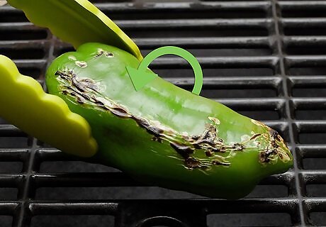 Turn the peppers over every four to six minutes. This will ensure that they are evenly roasted. Press an uncooked side of the pepper against the grill each time you turn.