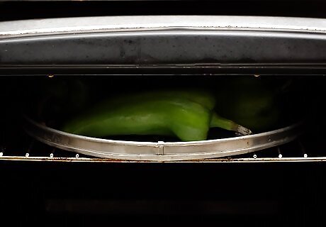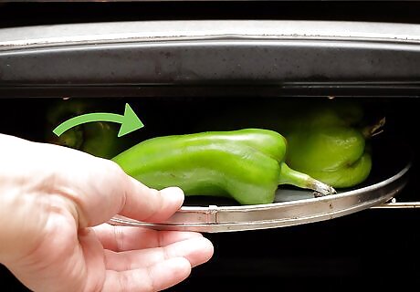 Place the peppers below the broiler. Keep them close to the heat source. Ideally, they should be about 2 inches (5.1 cm) below the broiler itself.