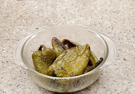 Steam the peppers to make the skins easier to remove. While peppers can be peeled without steaming, it may make your job easier. As soon as the peppers have finished cooking, place them in a heat-proof bowl and cover them with a dishtowel. Leave them for twenty minutes before you remove the cloth.