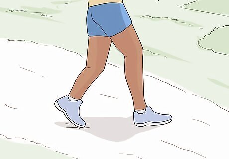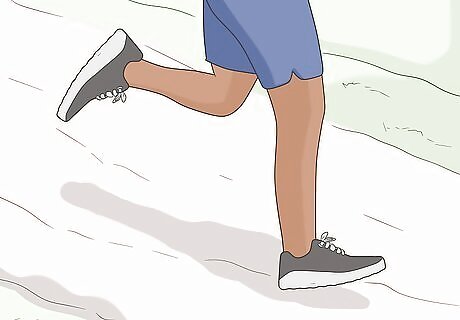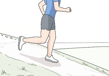 Maintain minimal contact with the ground while running. While making each stride, try to keep your feet from planting hard on the ground as you land. Treat your feet like you’re running on hot coals and trying to keep them in the air for as long as possible. This will help slow your pace a little while minimizing how much impact your knees absorb. The longer each foot stays on the ground, the more weight you’re putting on each leg.