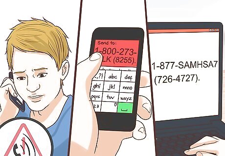 Contact an emergency hotline. If you are having a mental health crisis at college, reach out to an emergency hotline. Call, text, or email the emergency hotline so you can talk to someone about how you are feeling and get the help you need. Many mental health hotlines are available 24/7 and have trained operators who can assist you. Call 911 or emergency services in your area if you need immediate medical assistance due to your mental health. You can speak with someone over the phone or by text if you're in the United States by calling or texting 988. If you're outside of the United States, you can contact the suicide prevention hotline for the country that you're in. You can also get more information on mental health services in your local area by contacting the SAMHSA Treatment Referral Helpline, 1-877-SAMHSA7 (726-4727).