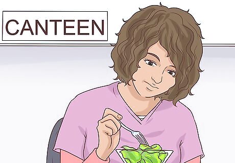 Eat healthy. Part of having balanced mental health is eating healthy while you are at college. Go for healthy food options when you eat on campus, such as the salad bar. Avoid eating junk food or food high in empty calories, as this can get in the way of your productivity and cause you to feel less than your best. Never skip meals, even when you get busy! Pack healthy snacks to have between classes when you start to feel hungry so you can keep your energy up. Make a meal plan for the week and go grocery shopping so you have the ingredients on hand. Make healthy meals for yourself at home so you don't spend money eating out all the time. This will also ensure you maintain a healthy diet while in school.