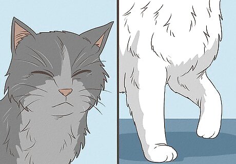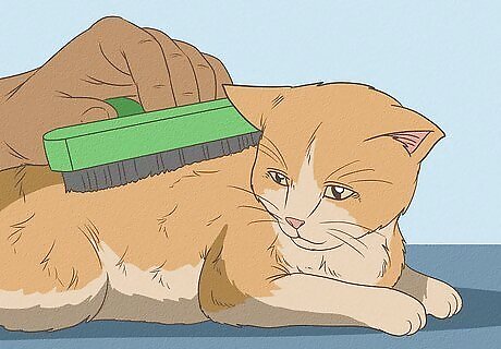 Wipe your cat down with a wet washcloth. This removes the outer dirt and cleans well. You can find pet wipes at pet stores that need no water to groom the cat. They even have a pleasant scent.