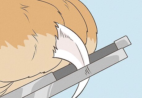 Trim your cat’s claws. Your cat may become excited or scared when covered in water, so to decrease the damage they may cause, trim their nails before you give them a bath. Try to do this a few hours of even a day or two before the bath so they have time to calm down. Take care to cut at a point that won’t cause pain or bleeding. Give your kitty treats as a reward for getting their nails trimmed. This will help them feel calmer.