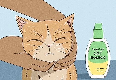 Use dry cat shampoo. If your cat hates water, opt for a rinse-free cat shampoo. Look for a natural, unscented, hypoallergenic option and follow the product’s instructions to apply it to your cat.