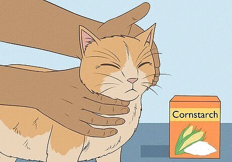 Rub your cat with cornstarch. If your cat is very oily, consider using cornstarch instead of water to bathe them. Dust your cat with the cornstarch and gently pet them to rub it into their fur. Let the cornstarch sit for about 20 minutes and then brush it out. This technique is far less traumatic than using water but should not be used to wash off anything poisonous that your cat has gotten onto their fur.
