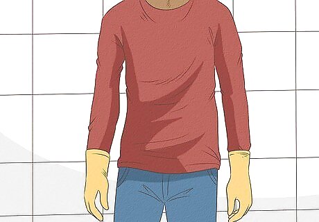 Wear protective clothing. This will keep you safe from any possible scratches, major or minor. Opt for a sweater or long-sleeved shirt so your cat has no bare skin to scratch. Wear jeans or thick pants to protect your legs. You can wear long-sleeved rubber gloves, as well, but these are bulky and can get in the way. Be careful and gentle when you rub your cat’s head and belly, as these are sensitive areas. It’s also a good idea to wear old clothing that you don’t mind getting wet.