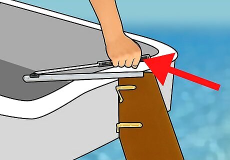 Position yourself on the rail so that you are facing the bow (the smaller end) of the boat. Your front foot should be up against the bulkhead (the foot high separator halfway up the boat).