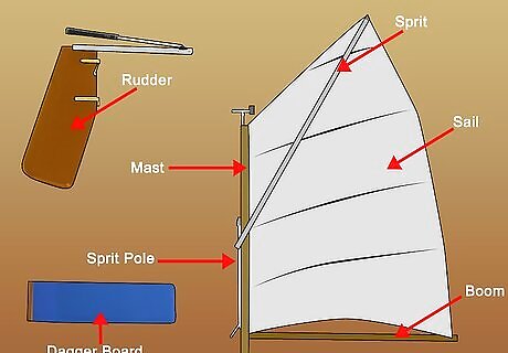 Obtain all of the equipment needed (a rudder, dagger board, sail, mast, boom, and spirit pole etc). These should all come with the boat. If you are buying the boat new, a decent seller will always include rigging equipment such as lines (ropes) and blocks (pulleys). These are extremely expensive for what they are and also difficult to assemble if you buy them separately. It is also recommended to buy a dolly with the boat as well. Optimists are heavier than they look and if you are launching them from a beach, then dragging them on the sand removes the gel coat (the smooth finish on top of the fiberglass) and drastically slows you down in the water..