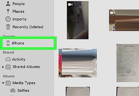Click the name of your external source on the left sidebar. Find the name of your camera or external drive on the sidebar, and click on it to view all the pictures here. You'll usually find your source under the "Import" heading. If you don't see the sidebar in Photos, click the View tab on the menu bar at the top of your screen, and select View Sidebar on the menu. Alternatively, press ⌥ Option+⌘ Command+S on your keyboard to view and hide the sidebar.