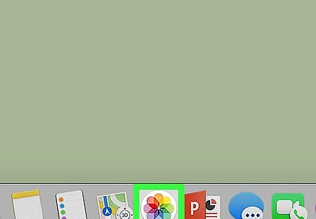 Open the Photos app on your Mac. The Photos icon looks like a colored pinwheel on a white button. You can find it in your Applications folder. Photos is one of Mac's native stock apps. It comes readily available in all Macs.