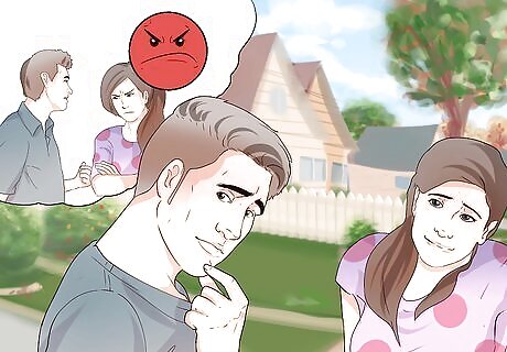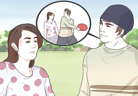 Notice the physical changes that happen when you are around girls you like. Take cues from your body so that you can recognize when you're too worked up to have a conversation. Do your breathing and heartbeat get faster? Do your face and body feel flushed and sweaty? If you need extra time to calm down before you talk to girls, walk around a bit and control your breathing by inhaling deeply and exhaling slowly. Don't think too much about it ahead of time.