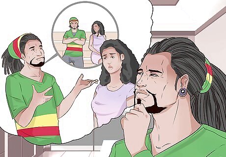 Don’t be afraid to talk to yourself. Come up with a phrase that you can repeat when you feel like you’re losing control of your emotions or body. For example, if you get nervous every time you want to talk to a girl, take a time out. Go somewhere quiet and tell yourself, “She’s just a person. Just a person. I’m a person. Just a person. I’m a person.” When you’ve calmed down, you should attempt to talk to her again.
