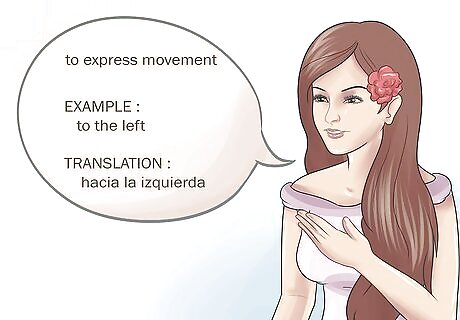 Use "hacia" to express movement. Hacia can also be used in expressions when "to" stands for "towards." Example: to the left Translation: hacia la izquierda