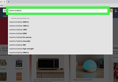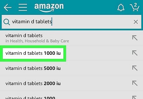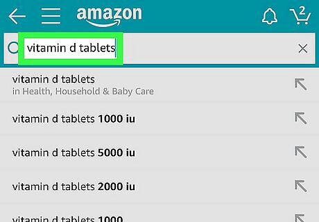 Type what you're looking for. For example, if you're searching for Vitamin D tablets, type vitamin d tablets here. A list of suggested searches will appear below the Search bar.