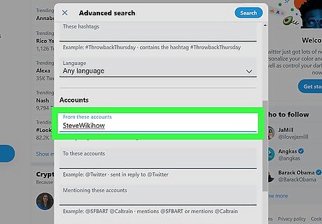 Type your username in the "From these accounts" field. You'll see this under the "People" section header.