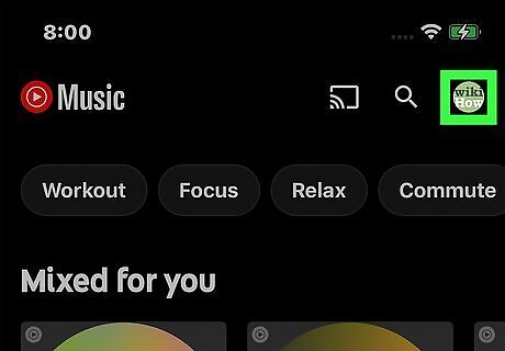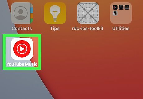 Open the YT Music app on your iPhone or iPad. The YouTube Music icon looks like a white play button in a red circle.