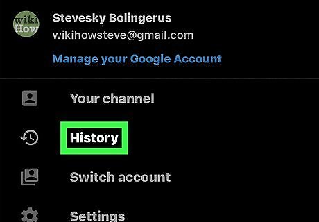 Tap History on the menu. This will open your YouTube Music watching and listening history.