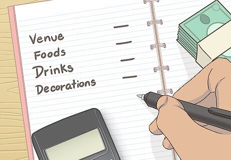 Set a budget for your venue. Determine how much money you want to spend on the venue, and engagement party as a whole, as this will help you know what you can or cannot afford. Other monetary commitments you’ve made for the wedding may determine how much you want to spend on the engagement party. The price of an engagement party will range significantly depending on your guest numbers, venue, and food and drink you offer. For an average engagement party, however, you can plan on spending about $15-25/per person. You may not want to throw an extremely lavish engagement party if it means skimping on the wedding and honeymoon!