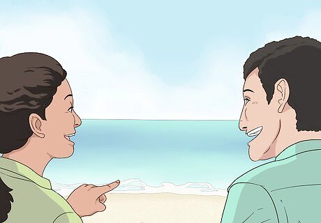 Consider using your own home or someone else's home. This might be a great option for you if you’re looking for a more budget-friendly venue. Or if you’re the homebody sort, this would be a good venue in which to feel comfortable. If you don’t have a large home, no problem! Throw an open house party over the course of a day or evening so your guests can come in and out as they please. Utilize any large, open spaces in your home, such as a big backyard. You can always move some extra furniture to another room to make your home more spacious for your guests. Throw up some fun decorations to make your home more festive for the occasion. Bunting and garland make for simple and easy decorations. You could even string up photos of you as a couple to add to the mood.