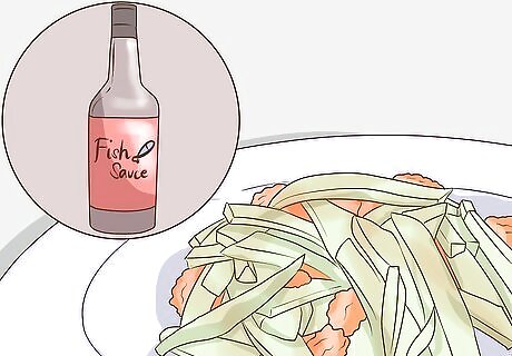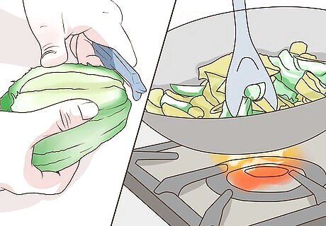 Stir-fry your choko. Choko stir fry is very popular in Vietnam. The choko soaks in the various flavors, keeps a nice, firm texture, and if the seeds are kept, adds that great nutty flavor. Try the following recipe for a savory meal. Mix ½ Tbsp. sugar, ½ tsp pepper, and 1 Tbsp. fish sauce to marinate your favorite cut of beef (finely sliced) for ten minutes. Heat 2 Tbsp. vegetable oil and fry 1 Tbsp. of finely minced garlic. Then add the beef, sauté for 1 minute, and set aside. Add 1 Tbsp. fish sauce, 2 chokos (peeled & sliced into batons), 1 Tbsp. of water, and ½ Tbsp. sugar. Cover and cook for 5 minutes. Add spring onions and the beef, then stir and serve.