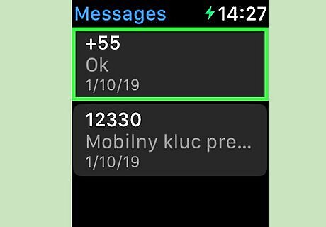 Select a conversation. Scroll through your Messages conversations until you find the one to which you want to send a drawing, then tap the conversation to open it. You may first have to tap the "Back" button in the top-left corner of your Apple Watch's screen if Messages opens to a conversation you don't want to use.