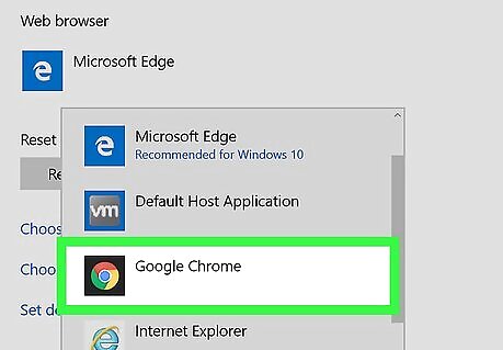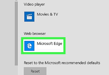 Click the icon beneath “Web browser.” The icon is the one that represents your current default web browser. For example, if your default browser is Microsoft Edge, click the Edge icon (a blue and white “e”).