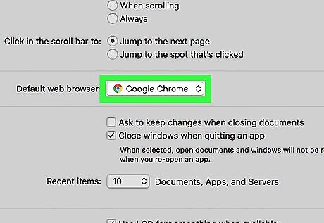 Click the “Default web browser” drop-down menu. It’s about halfway down the screen. A list of installed web browsers will appear.